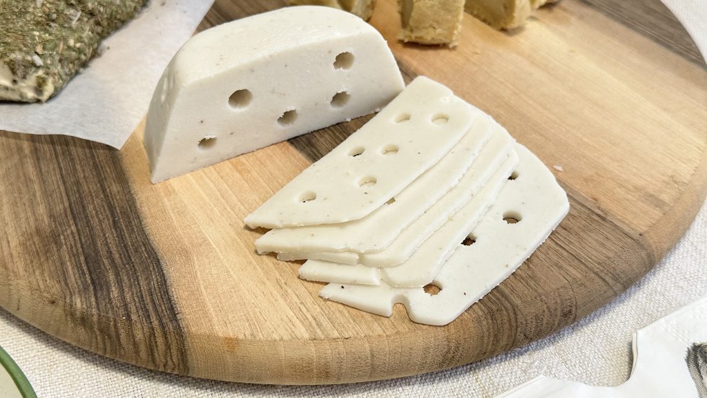 Ovaj sir je vizualni hit – izgleda kao pravi švicarski sir, a okusom je blag i savršen za rezanje.