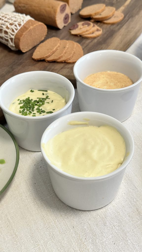 Žumanjak: Izblendajte 100 g kuhanog slanutka, češnjak, kurkumu, sol, 3-4 žlice maslinovog ulja i čili.
